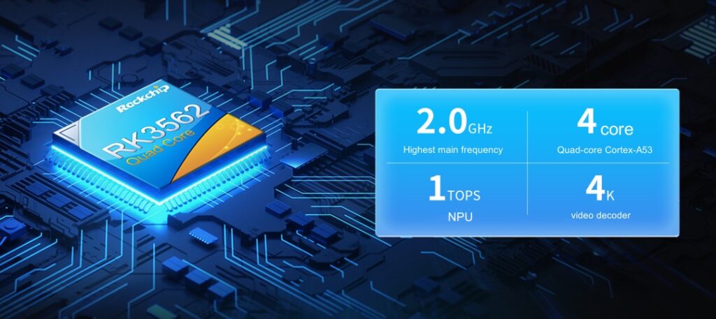Equipped with an NPU boasting up to 1TOPS computing power (supporting INT8 and INT16), the board easily handles AI tasks like facial recognition, object detection, and license plate recognition.