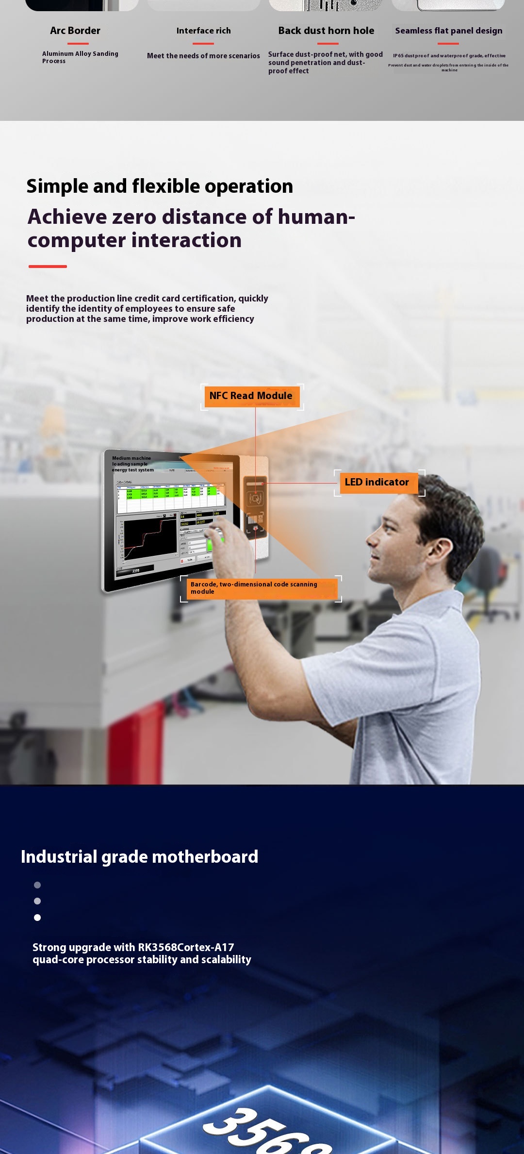 •Rich I/O Interfaces: HDMI, USB, RS232, RS485, RJ45, optional POE and GPIO.