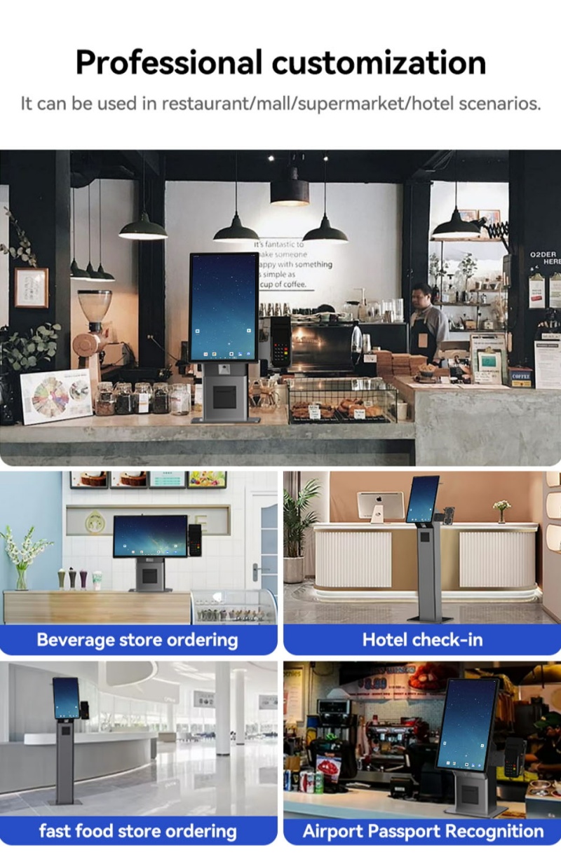 This self-service ordering kiosk is designed to optimize customer experience and operational efficiency in restaurants, cafes, and retail outlets.