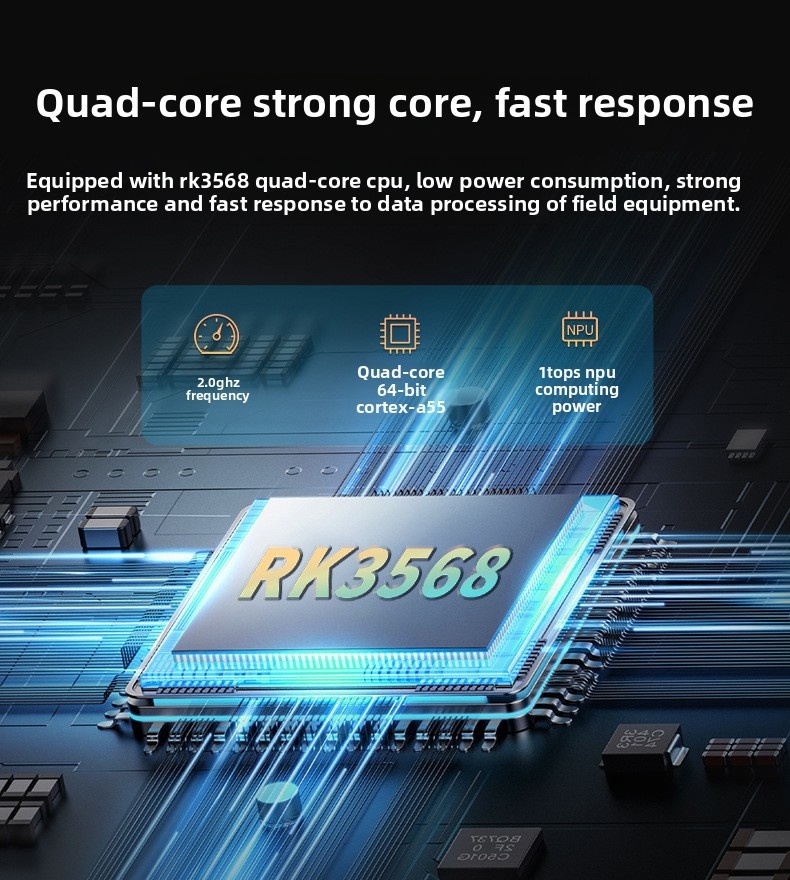 ✅ High-performance quad-core RK3568 CPU (up to 2.0GHz) — ensures fast data processing and optimized energy scheduling