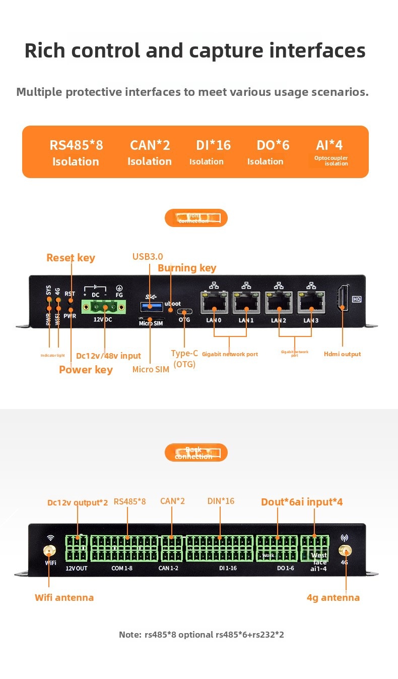 ✅ Multiple I/O ports: up to 8×RS485 or optional 6×RS485+2×RS232, DI/DO — flexible connectivity with field devices and sensors