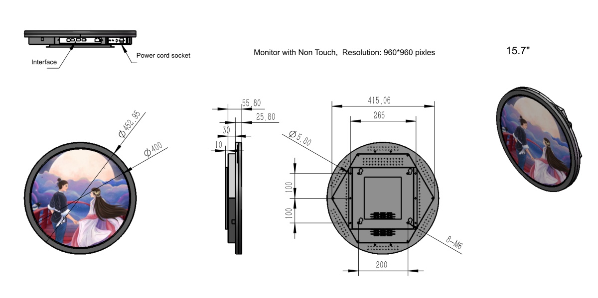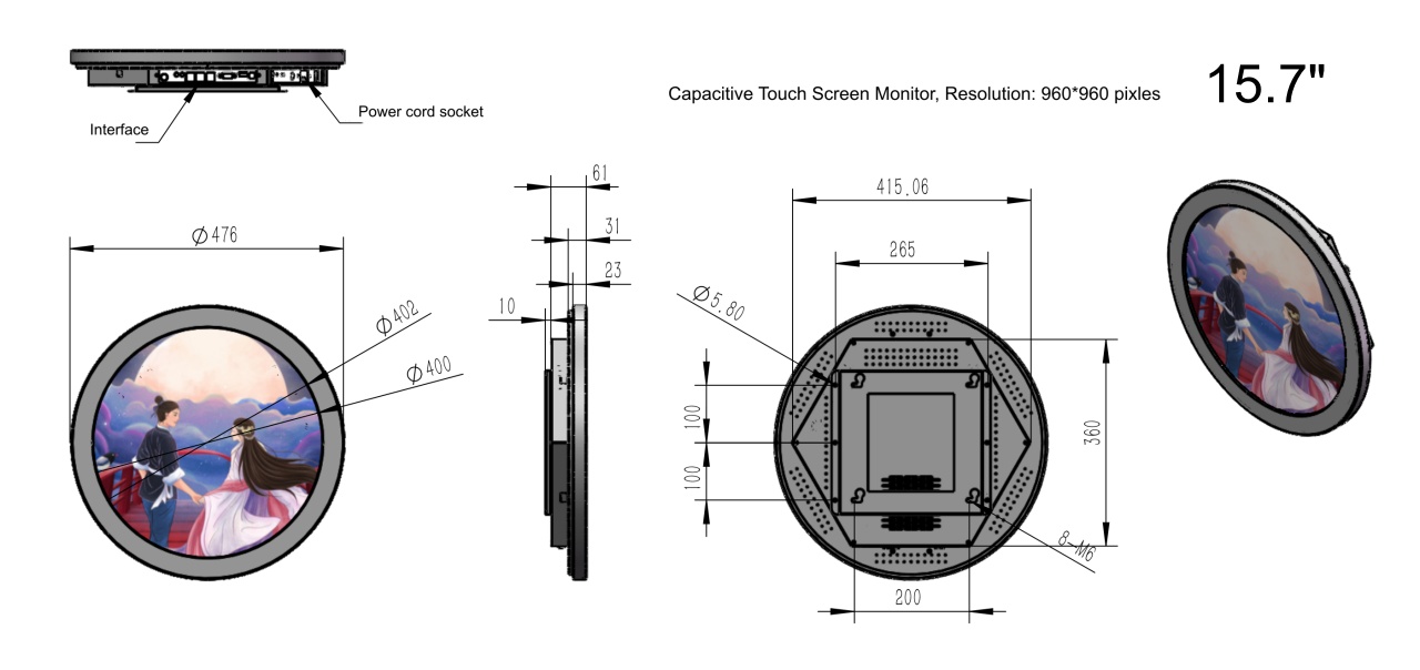 Round 15.7” 15.7 inch 960×960 Touch / Non-Touch Wall / Hanging Retail / Art / POS