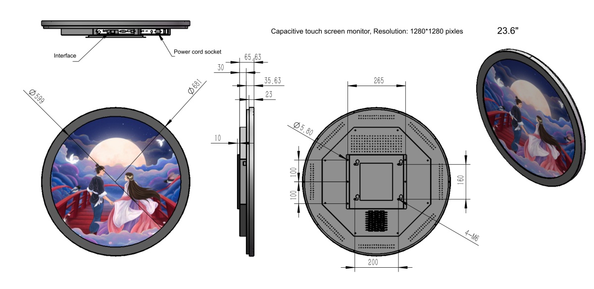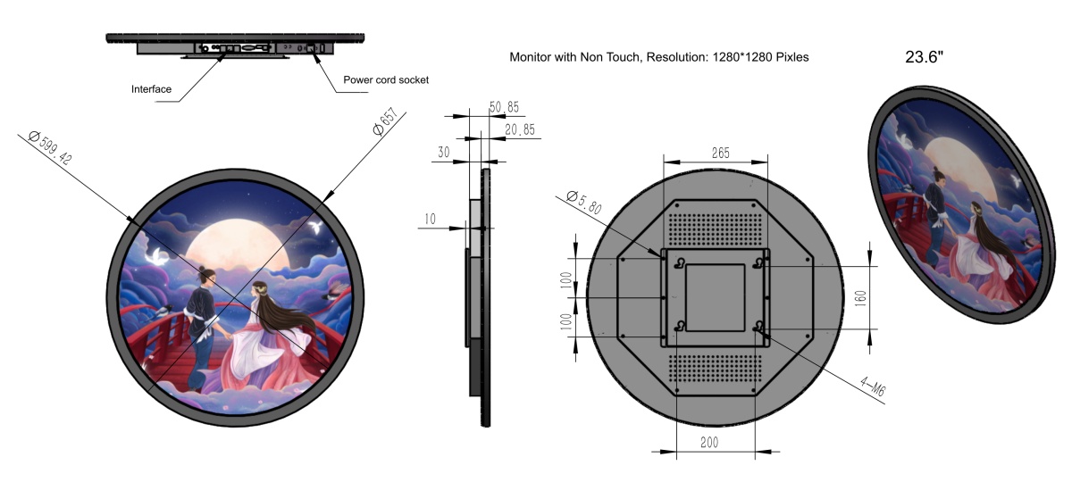 Circular Display for Creative Digital Signage Applications, 15.7″ / 23.6″ Round LCD Display Screen with 960×960 / 1280×1280 Resolution