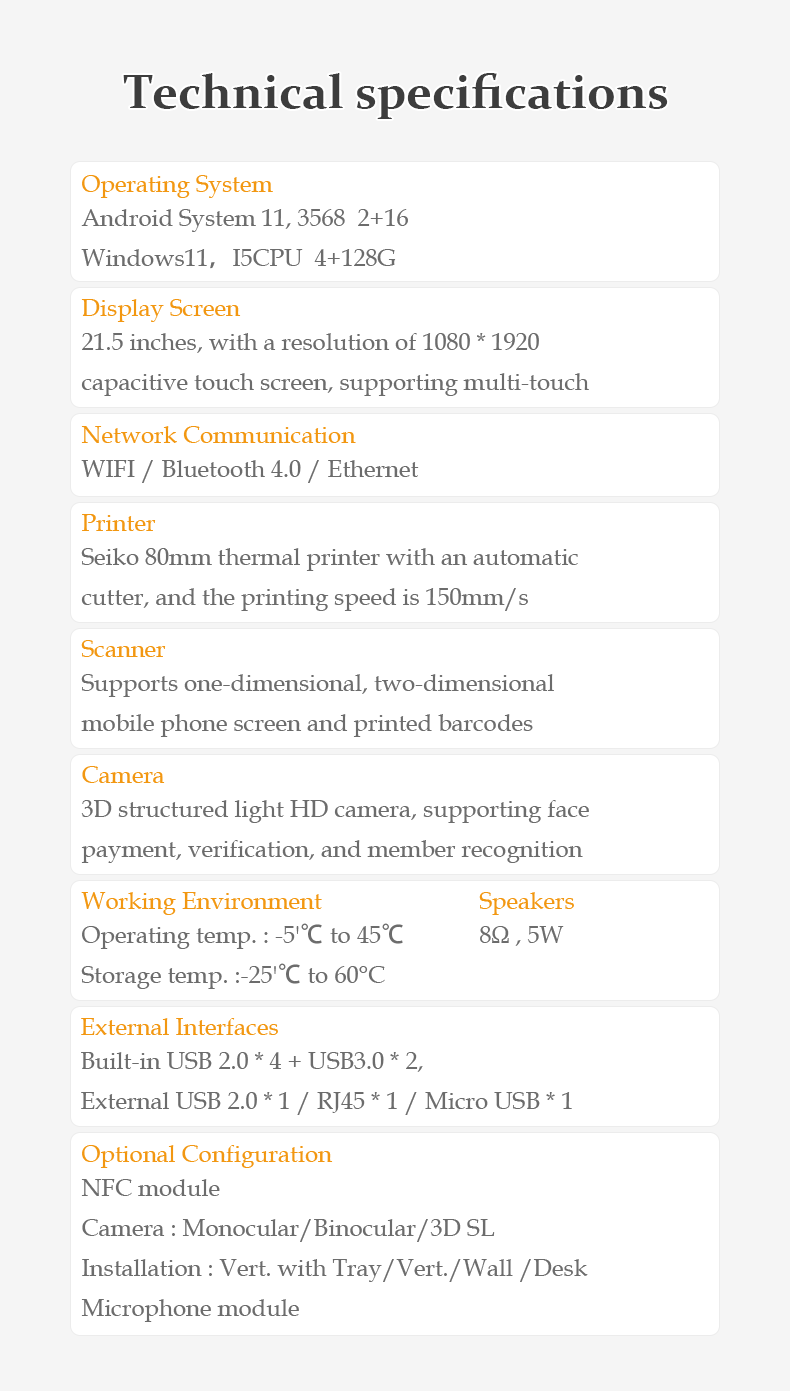 This self-service ordering kiosk is designed to optimize customer experience and operational efficiency in restaurants, cafes, and retail outlets.