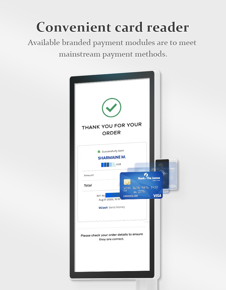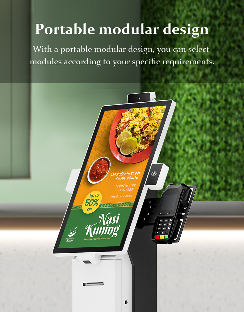 This self-service ordering kiosk is designed to optimize customer experience and operational efficiency in restaurants, cafes, and retail outlets.